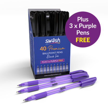 Swäsh premium ballpoint pen in a medium tip – supplied with Black ink. Popular with teachers for marking work; anyone wanting their notes to stand out; for general sketching; or a bright & vivid writing style.